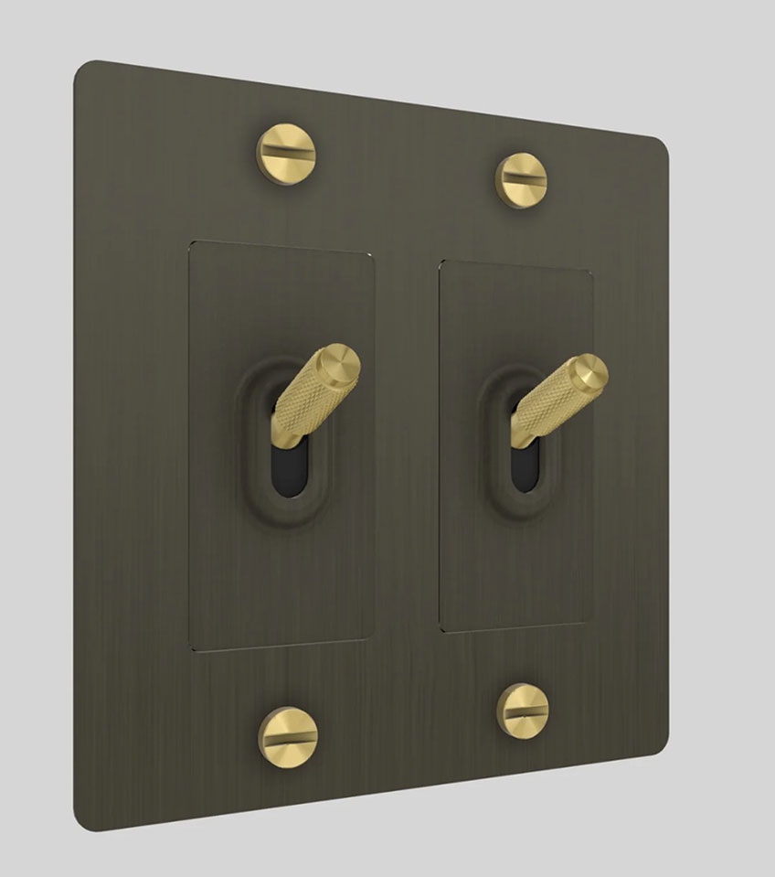 Inspired by vintage hi-fi stereo toggles, Forbes & Lomax makes minimalist switch gear that’s as tactile as it is sleek. Their range includes toggle, rotary, and dimmer switches with designer appeal, often installed flush with the wall for a seamless look.